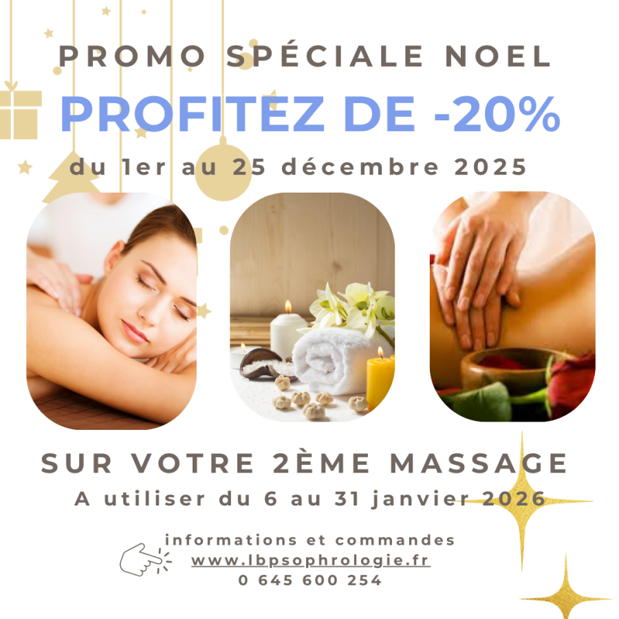 Profitez de -20 % sur votre massage de janvier. Valable du 6 au